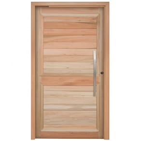 Porta pivotante de lambris. Composta por: 1 folha de porta, marco, guarnições para um lado, dobradiças pivotantes, fechadura e puxador. Marco simples. Folha de porta de 1,00m. Fechadura Alavanca Stam. Peitoril removível, para instalação sobre o piso, reduzindo em 3 cm a altura do marco (de 2,17 passa para 2,14). Produto pronto para instalação. Acompanha Batedor: Sim Acompanha Batente: Sim Acompanha Dobradiça: 02 Acompanha Fechadura: Sim Acompanha Guarnição: Sim Acompanha Manual de Instalação: Sim Acompanha Puxador: 01 Acompanha Trinco: Não Altura: 217 cm codigo_ean: 7899641815677 Cor: Natural Cor do Batente: Marrom Cor do Produto: Natural Elétrica: Não Escala de Brilho: Fosco Espessura: 3 cm Itens Inclusos: 1 Folha De Porta, Marco, Guarnições Para Um Lado, Dobradiças Pivotantes, Fechadura, Manual E Puxador. Lado de abertura: Esquerda Largura: 107 cm Largura do Batente: 9,4 cm Manual de Montagem e Instalação: https://product-hub-prd.madeiramadeira.com.br/664202/documents/1d6e93f3-d94e-4058-be7e-d2e508aaa992vaodasesquadriasconvertido.pdf Marca: Rondosul Material da Dobradiça: Aço Material do Batente: Madeira Material Principal: Madeira Maciça Medida do Vão: 220cmx110cm Necessita Montagem: Não Número de Folhas: 01 Origem do Produto: Nacional Peso: 57 kg Possui Grade: Não Preenchimento da Porta: Maciça Recomendações de Uso, Manutenção e Limpeza: O Produto Deve Ser Pintado E Bem Instalado Para Haver Garantia. Produto Sem No Mínimo Duas Demãos De Pintura E/Ou Mal Instalado E/Ou Mal Conservado São Situações Que São São Aceitas Pela Garantia. Aconselhamos A Imunização Contra Insetos (Cupim) Com Produto Adequado, Pois A Madeira Não É Tratada Na Fábrica. Textura da Porta: Entalhada Tipo de Dobradiça: Simples Tipo de Madeira: Eucalipto Tipo de Porta: Pivotante Tipo de Puxador: Externo Vidro incluso: Não Marca: Não Informado