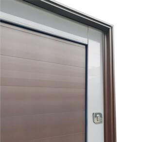 Portas Pivotante de Alumínio, Linha Elite, Pintura Eletrostática Mix Corten, 1 Folha de Abrir para o Lado Direito, Lambris Horizontais, , Puxador Milão 100 Cm Polido, Altura 216 Cm, Largura 130 Cm, Requadro 11,5 Cm, Garantia de 5 anos contra defeitos de fabricação.