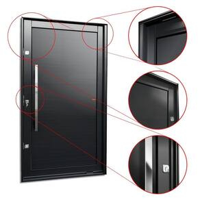 Itens Inclusos: 1 Porta Pivotante Completa, com Batente, Pivots, 1 Fechadura rolete principal e 2 fechaduras auxiliares, Puxador duplo de 100 cm.
