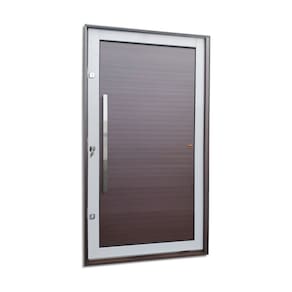 Portas Pivotante de Alumínio, Linha Elite, Pintura Eletrostática Mix Corten, 1 Folha de Abrir para o Lado Esquerdo, Lambris Horizontais, , Puxador Milão 100 Cm Polido, Altura 240 Cm, Largura 150 Cm, Requadro 11,5 Cm, Garantia de 5 anos contra defeitos de fabricação.