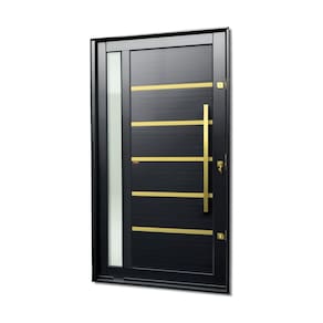 Portas Pivotante de Alumínio, Linha Elite, Pintura Eletrostática Preta, 1 Folha de Abrir para o Lado Direito, Vidro Liso Incolor 5mm Temperado, Lambris Horizontais e 5 Frisos Escovados, Dourados e Envernizados, Puxador Milão 100 Cm Escovado Dourado, Altura 216 Cm, Largura 150 Cm, Requadro 11,5 Cm, Garantia de 5 anos contra defeitos de fabricação. Ambientes Recomendados: Externo Acabamento do Puxador: Fosco Acompanha Batente: Sim Acompanha Dobradiça: 02 Acompanha Fechadura: Sim Acompanha Guarnição: Não Acompanha Manual de Instalação: Não Acompanha Puxador: 01 Altura: 216 Ambiente Principal: Sala de Estar Cor: Preto Cor do Batente: Preto Cor do Produto: Preto Cor do Vidro: Incolor Elétrica: Não Escala de Brilho: Fosco Espessura: 11.5 Espessura do Vidro: 5 Isolamento Acústico: Não Itens Inclusos: 1 Porta Pivotante Completa, com Batente, Pivots, 1 Fechadura rolete principal e 2 fechaduras auxiliares, Vidro lateral, Puxador duplo de 100 cm. Lado de abertura: Direita Largura: 150 Largura do Batente: 11.5 Linha ou Coleção: Elite Manual de Montagem e Instalação: https://product-hub-prd.madeiramadeira.com.br/935385/documents/564a8bc2-0293-4526-b3a7-f6d92fa0d59566manualesquadriasaluminio.pdf Material da Dobradiça: Aço inox Material do Batente: Alumínio Material do Puxador: Alumínio Necessita Montagem: Não Número de Folhas: 01 Origem do Produto: Nacional Peso: 56 Tamanho: 216cm x 150cm Tipo de Dobradiça: Pivotante Tipo de Parede: Alvenaria Tipo de Porta: Pivotante Tipo de Puxador: Externo Tipo de Vidro: Temperado Vidro incluso: Sim