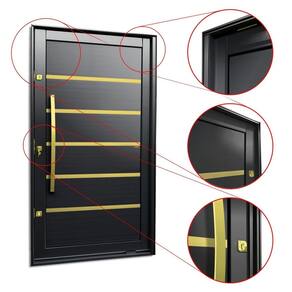 Portas Pivotante de Alumínio, Linha Elite, Pintura Eletrostática Preta, 1 Folha de Abrir para o Lado Esquerdo, Lambris Horizontais, 5 Frisos Escovados, Dourados e Envernizados, Puxador Dubai 100 Cm Escovado Dourado, Altura 216 Cm, Largura 100 Cm, Requadro 11,5 Cm, Garantia de 5 anos contra defeitos de fabricação. Ambientes Recomendados: Externo Acabamento do Puxador: Fosco Acompanha Batente: Sim Acompanha Dobradiça: 02 Acompanha Fechadura: Sim Acompanha Guarnição: Não Acompanha Manual de Instalação: Não Acompanha Puxador: 01 Altura: 216 Ambiente Principal: Sala de Estar Cor: Preto Cor do Batente: Preto Cor do Produto: Preto Elétrica: Não Escala de Brilho: Fosco Espessura: 11.5 Isolamento Acústico: Não Itens Inclusos: 1 Porta Pivotante Completa, com Batente, Pivots, 1 Fechadura rolete principal e 2 fechaduras auxiliares, Puxador duplo de 100 cm. Lado de abertura: Esquerda Largura: 100 Largura do Batente: 11.5 Linha ou Coleção: Elite Manual de Montagem e Instalação: https://product-hub-prd.madeiramadeira.com.br/935394/documents/49e201f2-59b3-4fd3-b15d-2fecb7f8143375manualesquadriasaluminio.pdf Material da Dobradiça: Aço inox Material do Batente: Alumínio Material do Puxador: Alumínio Necessita Montagem: Não Número de Folhas: 01 Origem do Produto: Nacional Peso: 37 Tamanho: 216cm x 100cm Tipo de Dobradiça: Pivotante Tipo de Parede: Alvenaria Tipo de Porta: Pivotante Tipo de Puxador: Externo Vidro incluso: Não