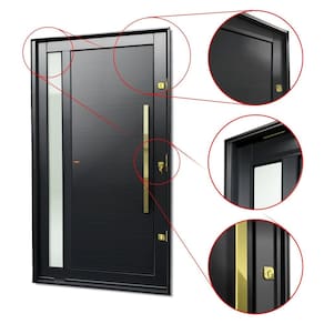 Portas Pivotante de Alumínio, Linha Elite, Pintura Eletrostática Preta, 1 Folha de Abrir para o Lado Direito, Vidro Liso Incolor 5mm Temperado, Lambris Horizontais, Puxador Milão 100 Cm Polido Dourado, Altura 240 Cm, Largura 120 Cm, Requadro 11,5 Cm, Garantia de 5 anos contra defeitos de fabricação.