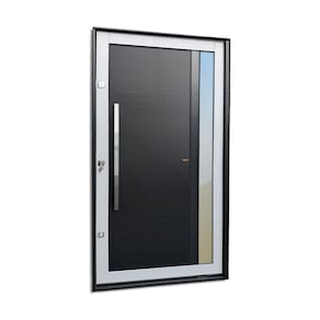 Itens Inclusos: 1 Porta Pivotante Completa, com Batente, Pivots, 1 Fechadura rolete principal e 2 fechaduras auxiliares, Vidro lateral, Puxador duplo de 100 cm.