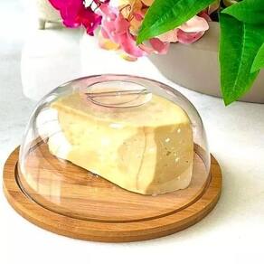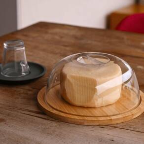 Queijeira Em Bambu Porta Queijo Com Tampa Acrílico Mesa Posta Yangzi