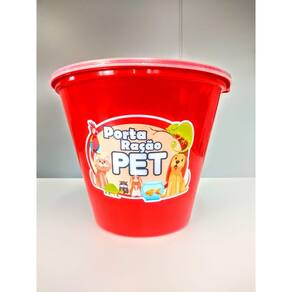 Porta Ração Vasilha Pet Vermelho Tampa Plástico Portátil 5,5L