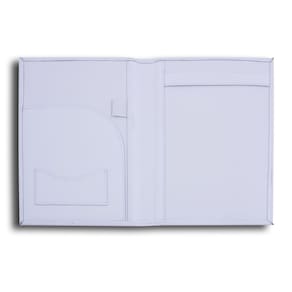 Porta-receituário confeccionado em Couro Branco contendo: -Porta Cartões -Aba para papéis e porta caneta caneta não inclusa -Suporte para bloco receituário Marca: Não Informado