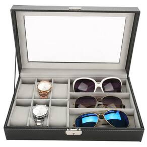 Deixe os seus relogios organizados com o nosso lindo porta relogio. Produzido em material resistente e duravel, possui 9 compartimentos para organizar não apenas relogios, mas também pulseiras, óculos de sol, o que mais desejar. Seu interior é revestido de camurça e mantém os relógios seguros e livres de arranhões. A tampa possui transparencia em vidro para melhor visualização dos relógios. Cada compartimento acompanha 6 almofadas.