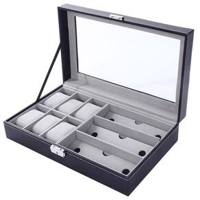 Deixe os seus relogios organizados com o nosso lindo porta relogio. Produzido em material resistente e duravel, possui 9 compartimentos para organizar não apenas relogios, mas também pulseiras, óculos de sol, o que mais desejar. Seu interior é revestido de camurça e mantém os relógios seguros e livres de arranhões. A tampa possui transparencia para melhor visualização dos relógios. Cada compartimento acompanha 6 almofadas.