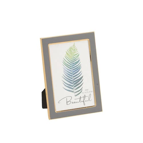 Porta Retrato 10x15 Em Aluminio e Tecido e Vidro Nas Cores Cinza e Dourado