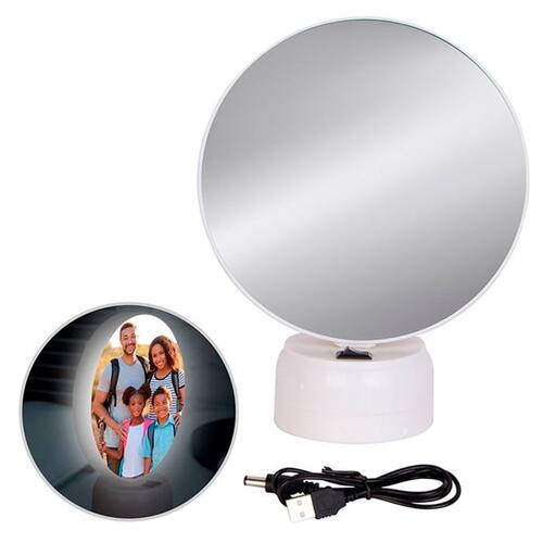 Porta Retrato com Espelho de Mesa Led para Maquiagem 2 em 1 Espelho 3 em 1, espelho, porta retrato e luminária