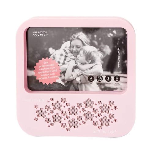 Os porta-retratos Uatt? são perfeitos para colocar as melhores memórias! A versão Mãe, Amor Que Ensina A Voar tem espaço para duas fotos, e possui um speaker com conexão bluetooth, e entrada usb para carregar a bateria, para você ouvir suas músicas favoritas! Características do produto: Material: ABS, PVC e componentes eletrônicos . Dimensões: 17,5 x 17,5 x 4,5 cm. Contém: 1 porta retrato speaker e um cabo USB. Cuidados: Limpar com pano seco. Não utilizar produtos abrasivos. Impactos e quedas podem danificá-lo. Isso não é um brinquedo. Mantenha longe das crianças. Manter longe de água e calor. Bateria fraca pode causar má conexão. Utilizar somente portas 5V, 500mAh para carregar. Não utilizar o produto enquanto ele estiver carregando. Tempo de recarga: 2 horas(100% carregado quando a luz vermelha desligar) Tempo de reprodução: 1h30