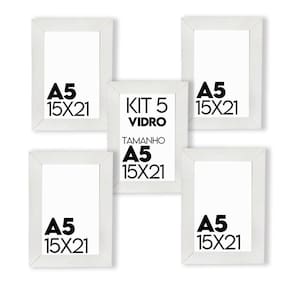Kit com 5 unidades de Porta retrato de Vidro 15x21cm Tamanho A5
