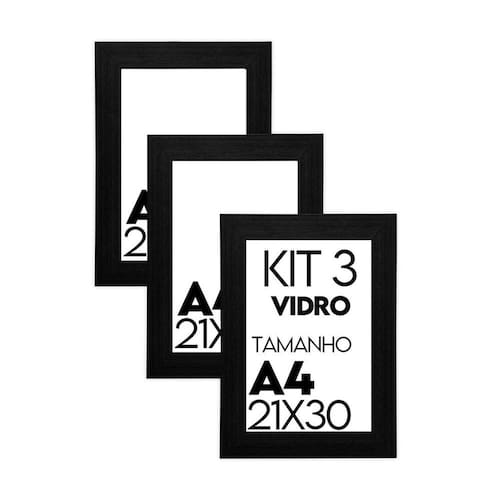 Kit com 3 unidades de Porta retrato de Vidro 21x30cm Tamanho A4