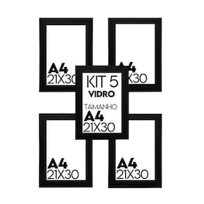 Kit com 5 unidades de Porta retrato de Vidro 21x30cm Tamanho A4