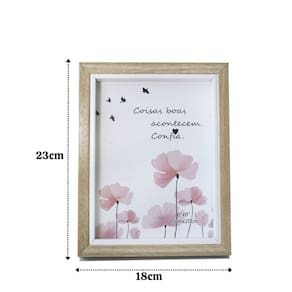 Composição: Madeira e Plástico Altura: 23 cm Comprimento: 18 cm Espessura: 2,5 cm Peso: 363 gramas Validade: Indeterminada Porta-retrato para fotos 15x20 cm