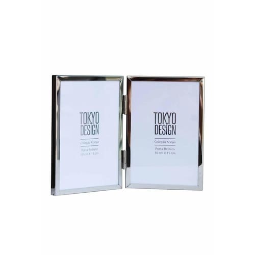 Porta Retrato Duplo Livro Abre fecha em Metal e Vidro 10x15