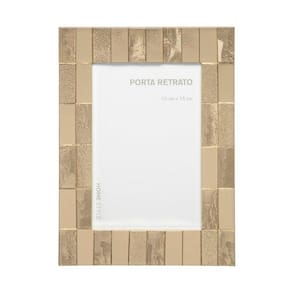 O Porta Retrato Tile tem dimensões de 15 x 10 cm e é uma peça delicada produzida em metal e vidro.
