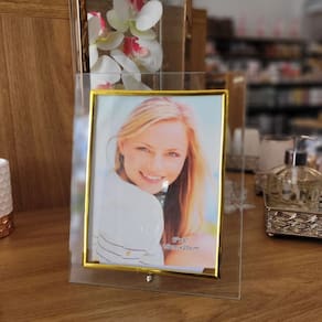 Decore seu espaço com classe e guarde suas melhores lembranças com o Porta-Retrato em Vidro com Borda Dourada. Adquira já o seu!
