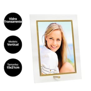 Imortalize seus momentos especiais com o Porta-Retrato em Vidro com Borda Dourada. Com um design moderno e minimalista, este modelo vertical de 15x20cm é perfeito para destacar suas fotografias de forma elegante, tornando-se um item decorativo de bom gosto para qualquer ambiente.