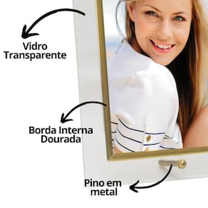 Porta Retrato Vidro Reto Prime Borda Gold 15x20 Vertical