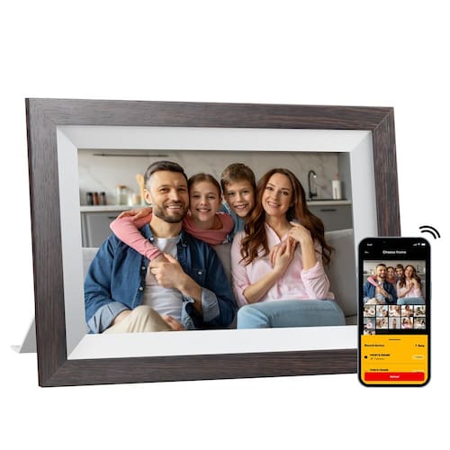 -?Compartilhe em tempo real com a família à distância?: esta moldura digital Wi-Fi usa Wi-Fi (alcance de 2,4 GHz) e instale um aplicativo dedicado em seu celular ou tablet (compatível com iOS e Android) e faça upload de fotos e vídeos para esta moldura digital para que você pode compartilhá-los em tempo real com seus entes queridos e familiares. Além disso, se você enviar a música para a moldura da foto, poderá reproduzi-la como música de fundo.