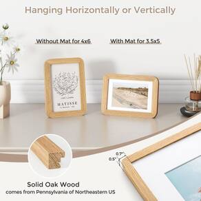 Apresentamos nossa deslumbrante moldura de madeira de carvalho maciça com cantos redondos exclusivos. Cuidadosamente trabalhada a partir de madeira de carvalho maciça de alta qualidade, esta moldura exala uma aparência autêntica e natural com grãos de madeira visíveis. Seu design versátil complementa qualquer estilo de decoração, do rústico ao moderno, tornando-o a escolha ideal para sua casa. Pendure-a horizontal ou verticalmente para melhor se ajustar ao seu espaço disponível ou coloque-a de forma independente em uma mesa, pois todas as ferragens necessárias para pendurar estão incluídas. Esta moldura de madeira de carvalho natural é um presente atencioso e personalizado para qualquer ocasião especial - aniversários, inaugurações de casa, formaturas, Natal e muito mais. É uma bela maneira de adicionar cor e personalidade a qualquer cômodo e criar memórias que duram uma vida inteira. Escolha nossa moldura de madeira de carvalho maciça para uma adição atemporal e elegante à sua casa. - Moldura de madeira de carvalho premium: nossa moldura de 10 x 15 cm é feita de madeira de carvalho maciça e possui um belo grão de madeira natural que combina perfeitamente com qualquer decoração. O design de canto redondo adiciona um toque minimalista, tornando-o uma adição elegante a qualquer ambiente doméstico. Esta moldura de 10 x 15 cm vem com um tapete de 1,2 mm para fins de visualização, e a moldura de 10 x 15 cm pode ser fosca para 9 x 12 cm - Design versátil: nossas molduras de parede são projetadas para serem elegantes e convenientes. A moldura de madeira de 10 x 15 cm pode ser pendurada horizontal ou verticalmente para caber no seu espaço e também fica de forma independente em uma mesa. Use-o para exibir suas fotos, pôsteres, diplomas, obras de arte ou impressões de arte, criando uma parede de memória elegante e coesa - Durável e resistente a arranhões: com uma moldura de madeira de 10 x 15 cm, 1,8 cm de largura e 1,3 cm de profundidade, cada moldura de madeira de carvalho é embalada com cantos de plástico separados para garantir que esteja protegida durante o transporte. Vem com um acrílico de estudo (folha de poliestireno transparente e protetora) para ajudar você a manter suas fotos seguras e protegidas - Fácil de prender e pendurar: estas molduras para pendurar na parede são elegantes, acessíveis e fáceis de pendurar, graças ao equipamento de pendurar incluído. Você pode pendurá-los horizontalmente ou verticalmente para caber no espaço disponível, e eles se encaixam facilmente no lugar. Não espere para exibir suas memórias favoritas em nossa linda e durável moldura de madeira - Transforme seu espaço: eleve seu espaço com nossa moldura de madeira de 10 x 15 cm e transforme seus momentos favoritos em obras de arte. Perfeita para exibir na sua sala de estar, quarto, escritório, apartamento ou dormitório, esta moldura adiciona um toque de sofisticação a qualquer espaço