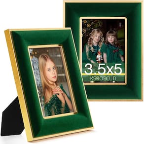 KSROECUD Porta-retrato de veludo de 8,5 x 12 cm - ?Moldura de veludo?As molduras de veludo Ksroecud são combinadas com um veludo verde vintage e borda metálica, é uma moldura deslumbrante que chama a atenção para a foto de beleza em exibição. Estas molduras exclusivas adicionarão um toque especial à decoração de sua mesa ou parede, tornando sua casa ou escritório mais pessoal e cativante. - ?Design exclusivo?Nosso conjunto de molduras verdes inclui 2 molduras bem construídas. A aparência da área de borda de veludo elevada cercada pela borda interna e externa metálica da moldura e destaca a beleza de suas fotos. O vidro real HD exibe claramente seus momentos maravilhosos, perfeito para manter suas memórias queridas com sua família ou amigos. - ?Fácil de usar? Esta moldura é destinada a exibir fotos de 8 x 12 cm. A moldura vem com ferragens para pendurar na parte de trás para pendurar horizontalmente ou verticalmente para caber no seu espaço disponível, e vem com botões de girar para trocar fotos sem dor. - ?Design HD e material de veludo?Nossas molduras são feitas de capa frontal de vidro real de alta definição, exiba suas fotos ou obras de arte de forma clara e perfeita! O veludo tem uma sensação suave e tocável e a cor da flanela é muito avançada, não parecerá muito opaca, dando uma sensação incrível. - ?OCASIÃO DE UTILIZAÇÃO? Esta moldura de veludo não só combina bem com fotos/eventos de família, Natal, aniversário, casamento, inauguração de casa, molduras de fotos de melhores amigas, mas também é uma decoração incrível em sua cafeteria, galeria de arte e muito mais. Dê de presente aos seus entes queridos, será o presente mais precioso e memorável.
