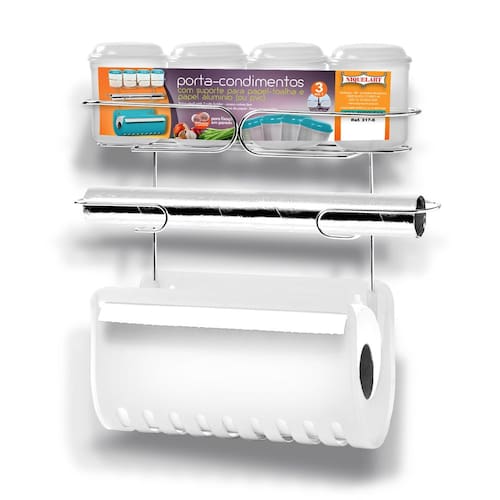 Esse porta condimento é perfeito para acomodar rolos de papel toalha, plástico transparente ou papel alumínio, além de contar com compartimentos específicos para armazenar seus condimentos favoritos. Assim, você terá tudo o que precisa em um só lugar, facilitando o preparo das suas refeições.