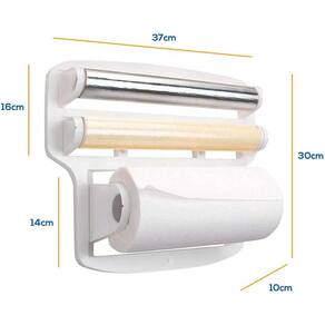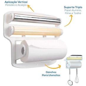 O suporte porta rolos da Dr. Útil pode ser colocado em qualquer lugar da sua cozinha ou até em armários, possui porta tripla para rolos e ainda possui regulador de tamanhos para os rolos de papel toalha.
