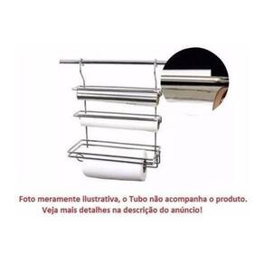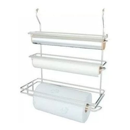 Porta Rolos Triplo Serrilhado Papel Toalha PVC Alumínio Medidas: 330x380x160mm Material: Aço Cromado Garantia: 12 Meses Fabricante: Aramados Jomer Obs. Importante! O Porta Rolos é para uso em Tubo de Sustentação, conforme segunda imagem. Foto meramente ilustrativa, o Tubo não acompanha o produto.
