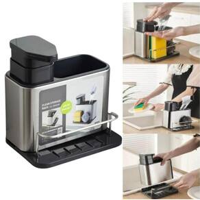 Porta Sabão aço inox 3x1 Dispenser Detergente Bucha Esponja Organizador Luxo Aço Inox 304 Dispenser Detergente Pia Cozinha Porta Espoja