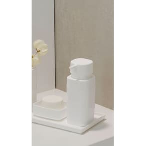 A cor Branca deste porta-sabonete líquido é neutra e clara, tornando-a adequada para uma variedade de ambientes e composições de cores no seu banheiro. Seu design é atemporal, com linhas retas e um perfil slim que não sairá de moda e permanecerá relevante ao longo do tempo.