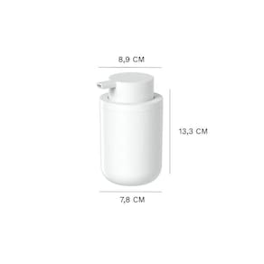 Porta Sabonete Líquido 300 ml: 7,8 cm comprimento x 8,9 cm largura x 13,3 cm altura