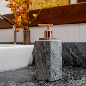 Porta Sabonete Líquido Dispenser em Pedra Sabão Rosê 22x7cm