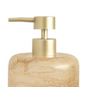 O Porta Sabonete Líquido Agatha vai deixar a pia ou bancada mais elegante! Confeccionado em resina, sua coloração marmorizada, adiciona beleza e estilo ao item. Esse acabamento é resultado de uma fusão de resina líquida por uma técnica manual durante a fabricação, que traz um efeito único em cada peça. O pump libera a quantidade ideal de produto a cada uso. O item pode ser combinado com outros utensílios de pia da mesma linha, a fim de criar uma composição decorativa e sofisticada do banheiro ou lavabo.