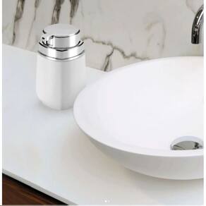 Produto: Porta Sabonete Liquido Local Indicado: Bancada Formato: Redondo Linha: Conceito Marca: Arthi Material: Plástico Cores: Branco e Cromado, Branco e Dourado, Preto e Cromado, Preto e Dourado DIMENSÕES: