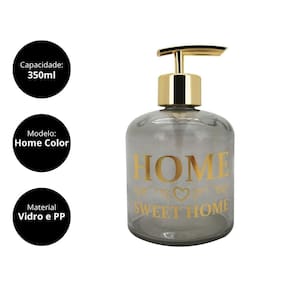 Porta Sabonete Líquido Vidro Sweet Home Fumê e Dourado 350ml - Yazi