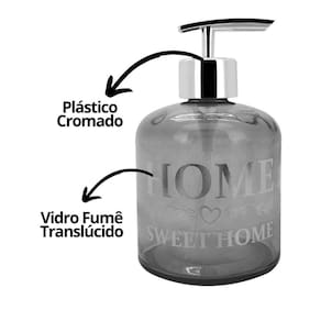 Porta Sabonete Líquido Vidro Sweet Home Fumê e Prata 350ml - Yazi