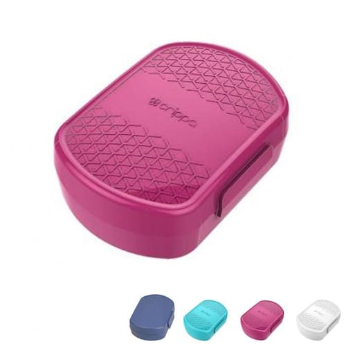 A Saboneteira da linha Organiza tem um sistema de abertura que não vai deixar que isso aconteça, garantindo mais segurança na sua viagem (mas quando precisar abrir mesmo é super fácil). E, além de eficiente, ela é compacta, bonita e divertida, e tem várias opções de cores.