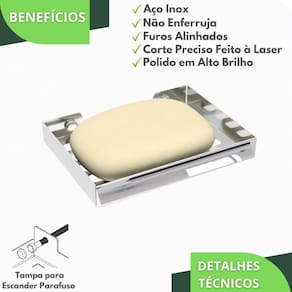 O Porta Sabonete tem um design clean e sofisticado, produzido em Aço Inox, com acabamento Polido em Alto Brilho garantindo maior durabilidade e resistência, não havendo problemas com ferrugem.