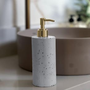 Agora, vamos falar sobre um item que vai transformar o seu lavabo ou banheiro: a Saboneteira Líquida Artesanal De Cimento Com Granilite.