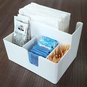 O porta sachês e guardanapos proporciona mais praticidade às suas refeições, além de deixar sua mesa ou bancada organizadas. Os molhos são parte fundamental na hora da degustação do alimento e os guardanapos são indispensáveis, por isso este organizador também é ideal para mesas de restaurantes, bistros, bares, cafés, lanchonetes e uma ótima escolha para quem tem seu próprio negócio. Com este suporte você facilita seu dia a dia da melhor maneira, pois ele possuí dois espaços para você organizar os sachês, um espaço para organizar palitos ou colherinhas e um espaço para acomodar os guardanapos, proporcionando melhor acomodação de seus itens. O organizador possuí design casual e compacto, por isso, se adapta facilmente à decoração já existente no ambiente.