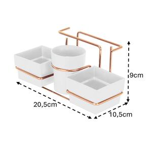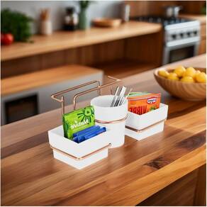 O conjunto para chá e café é prático e funcional, ideal para levar a mesa ou deixar na bancada do café. Os recipientes plásticos são ideais para armazenar saquinhos de chá, sachês de açúcar e adoçante e os mexedores.