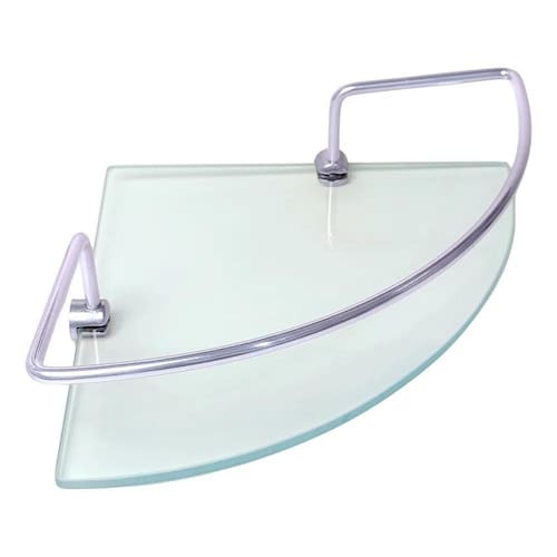 Porta Shampoo De Canto Cromado Grade Com Vidro Para Banheiro
