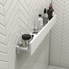 Porta Shampoo Linear 100cm Branco Standard Prateleira Porta Shampoo Linear 100 cm Branco Standard - Porta Shampoo Linear em Pedra Ardósia Praticidade e Elegância para o Seu Banheiro