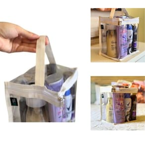 Porta Shampoo Necéssarie Organizadora Transparente Perfume Cor: Azul Apresentamos a Necessaire Viagem Mala Bagagem Transparente Maquiagem 1 Un. Cor Branco, uma criação da marca BOM CLOSET. Este produto é uma solução prática e elegante para organizar seus itens essenciais de beleza e higiene pessoal. Com um design transparente e sofisticado, permite que você visualize facilmente o conteúdo, economizando tempo e esforço na busca de seus itens.