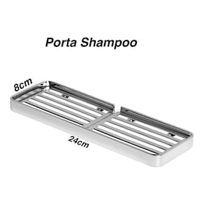 Ter um banheiro organizado traz leveza e praticidade para sua rotina. Para que o banheiro fique em ordem, é necessário o uso de alguns produtos. O Porta Shampoo é indispensável. Produzido em alumínio maciço com acabamento cromado de alta qualidade, não havendo problemas com ferrugem, com um designer clean e sofisticado, valorizando o ambiente do seu banheiro. Todos parafusos de fixação são de aço inox no acabamento semelhante da peça garantindo que não haverá problemas com ferrugem. Especificações técnica Área de aplicação - Banheiros, Lavabos, Box. Material - Alumínio maciço e Zamac Largura da barra chata:1.5Cm Espessura da barra chata: 3.4mm Acabamento: cromado. Formato: Designer "Clean". Medidas Medida profundidade - 8Cm. Medida largura - 24Cm Medida altura - 1.5Cm
