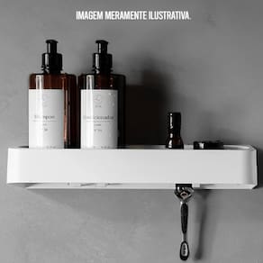 ESPECIFICAÇÕES TÉCNICAS: - Nossa loja: Ar15 Sport- Marca: OU- Material: Ps + Pvc- Modelo: Eleve- Fixação: Adesivo ultra resistente- Sem necessidade de furos na parede- Tecnologia Ultra Click de fixação fácil e segura- Pode ser utilizado dentro ou fora do box- Rebaixo para acomodar os frascos com segurança- Design que evita acúmulo de água e facilita escoamento- Suporta até 8kg- Moderno e minimalista - Dimensões: 7cm x 11cm x 36,5cm - Peso total: 295 gramas ITENS INCLUSOS: - 01 Prateleira de Parede Horizontal Colante Ou Eleve Observações: de 03 meses mediante defeitos de fábrica. Imagens meramente ilustrativas. A tonalidade da cor do produto pode variar de acordo com a tela em que estão sendo observadas as fotos.