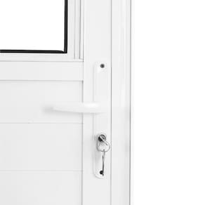 A porta Social Lambril, tem uma pequena porta de vidro na parte de cima da folha, que quando aberta permite a passagem de luz e ventilação, esse tipo de porta é indicada para ambientes como cozinha, entrada e área de serviço. O material de alumínio é resistente e leve e não precisa de manutenção constante.